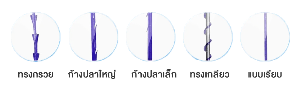 ก่อนจะร้อยไหม มารู้จักกับไหมแต่ละรูปทรง ซึ่งแต่ละแบบจะเกาะผิวและกระตุ้นการสร้างคอลลาเจนใต้ชั้นผิวได้ต่างกัน