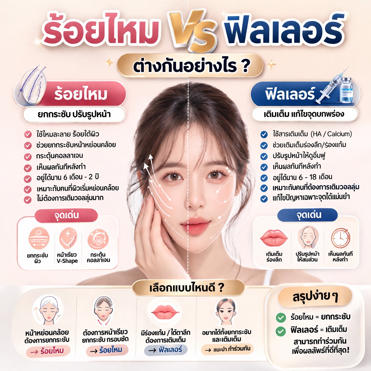 ร้อยไหม (Thread lift) ใช้เพื่อ ยกกระชับผิว